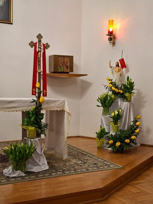 Niech Chrystus, który czyni nas swoimi uczniami i misjonarzami, napełni nasze serca swoim pokojem i radością wielkanocną. Modlimy się, aby Zwycięzca śmierci i Dawca pokoju uciszył burze konfliktów na świecie, uleczył rany wojny, zburzył mury nienawiści i rozproszył niepokoje naszych serc, abyśmy, zakorzenieni w Nim, stali się oazami ciszy i zaufania dla naszych bliskich oraz dla wszystkich, którzy potrzebują pomocy i duchowego wsparcia.